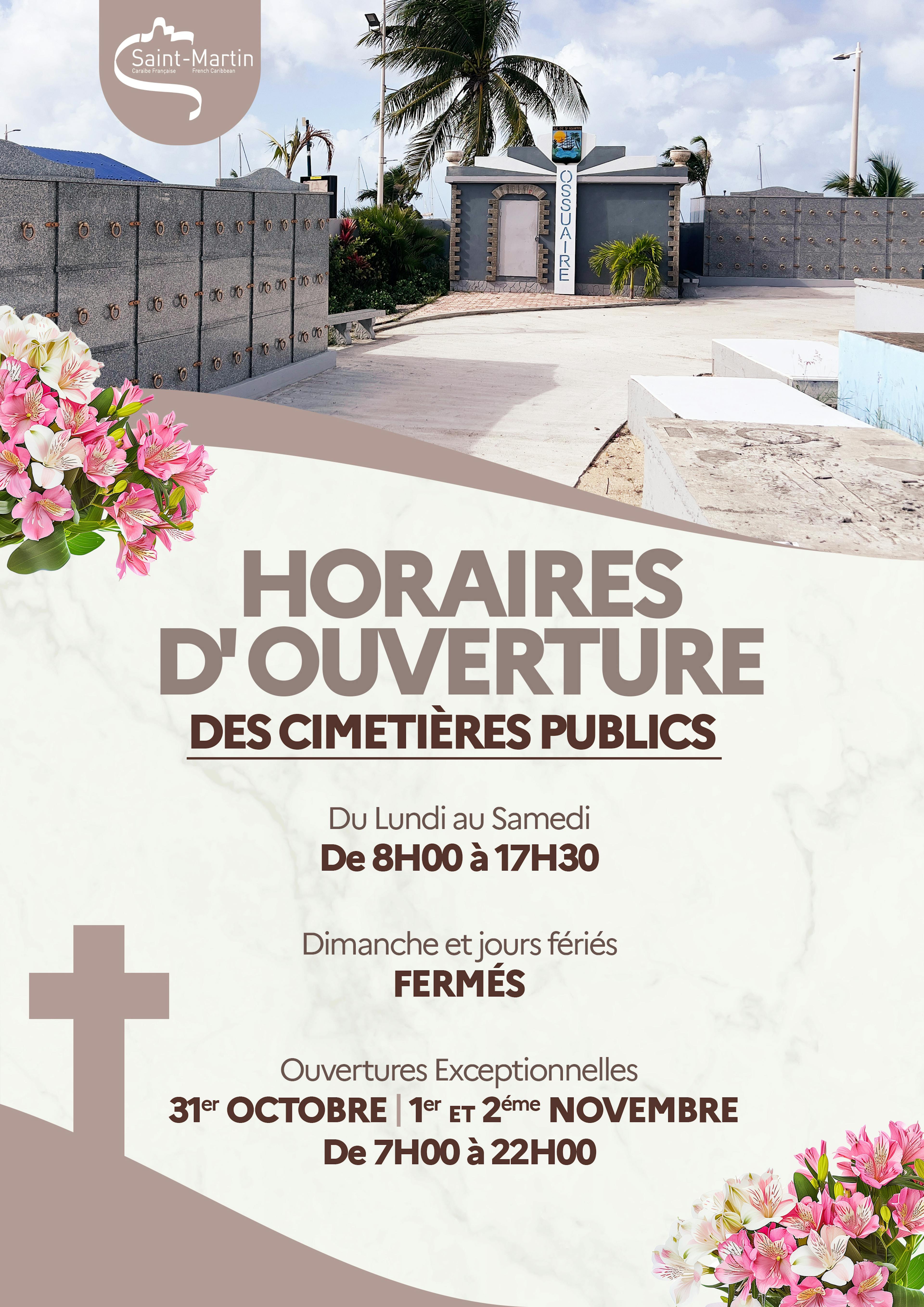 Affiche horaires d'ouverture des Cimetières publics