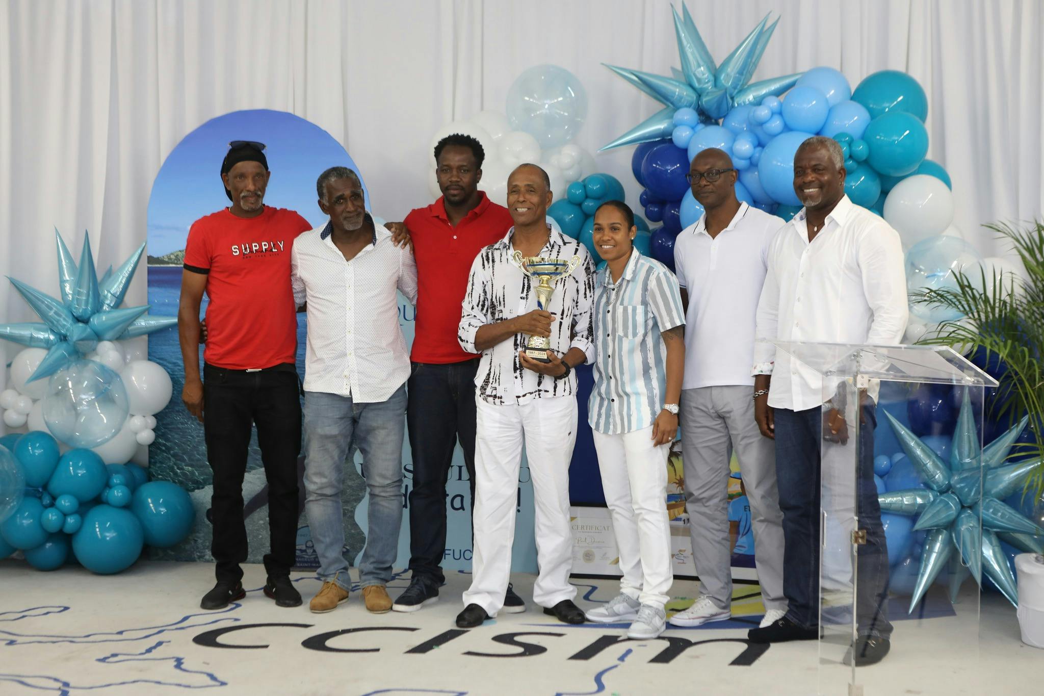 To salute the departure of Paul Dinane and his extraordinary career, with more than 37 years spent serving the youth of the territory, the Collectivité, represented by Mrs. Dominique Démocrite Louisy , 3rd Vice-President in charge of Human Development and Citizenship, Mr. Marc Gerald Menard , Territorial Councilor in charge of Sport and Mrs. Valérie Damaseau , President of the Tourist Office, responsible for culture, organized a thank you evening in the premises of the CCISM.