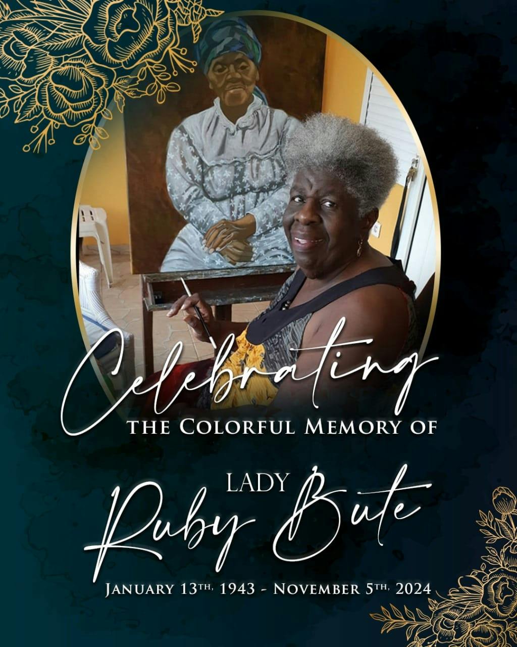 It is with deep sadness that we learned of the passing of Mrs. Ruby Bute. An accomplished artist, fervent representative of Saint Martin's art, especially painting and poetry that she practiced with great talent, Ruby marked her time and will forever remain an icon of our island.